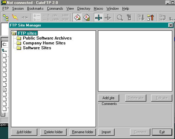 A: CuteFTP will allow you to upload and download files. Every Premium and Personal dialup account comes with 5 megs of user space that you can put up your own web page, so you might as well learn how to put up your personal web pages with an FTP program like this one.