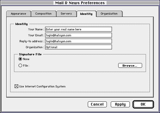 Mac users may choose to check the "Use Internet Configuration
