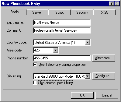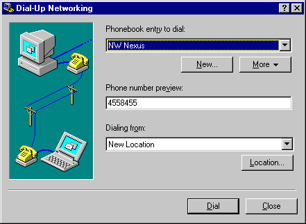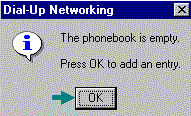 - Dial-Up Networking will report that the Phonebook is