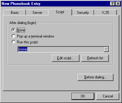 - Select 'None' under After dialing (login). You should not