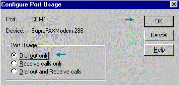 - Under Port Usage, select Dial Out Only.