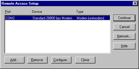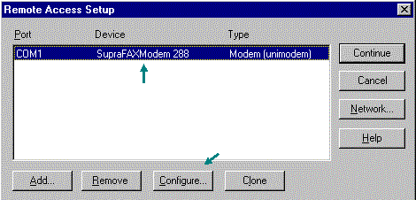 - If your modem is in the RAS setup window, then highlight