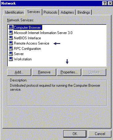 - Make sure that Remote Access Service (RAS) is on the list