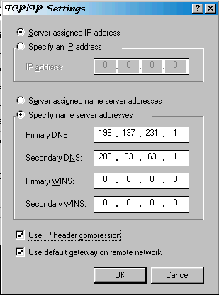 - Check both Use IP header compression, and Use default
